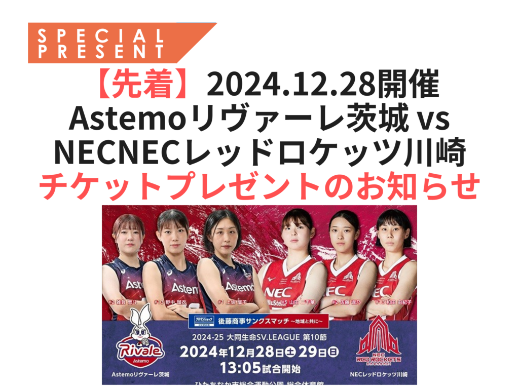 2024.12.28 Astemoリヴァーレ茨城を応援しよう! チケットプレゼント!