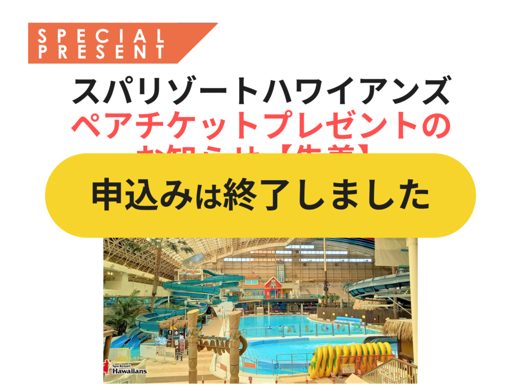 <先着締め切りました>ハワイアンズペアチケットプレゼント!!