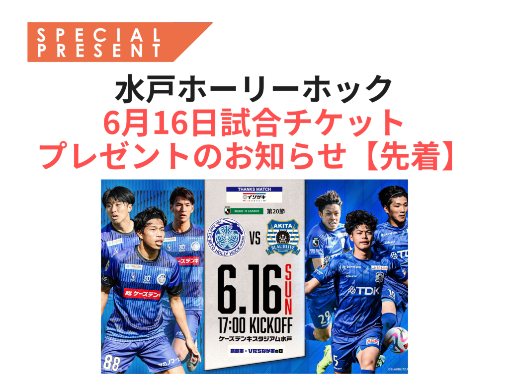 <締め切りました>2024.06.16水戸ホーリーホック試合チケットプレゼント!