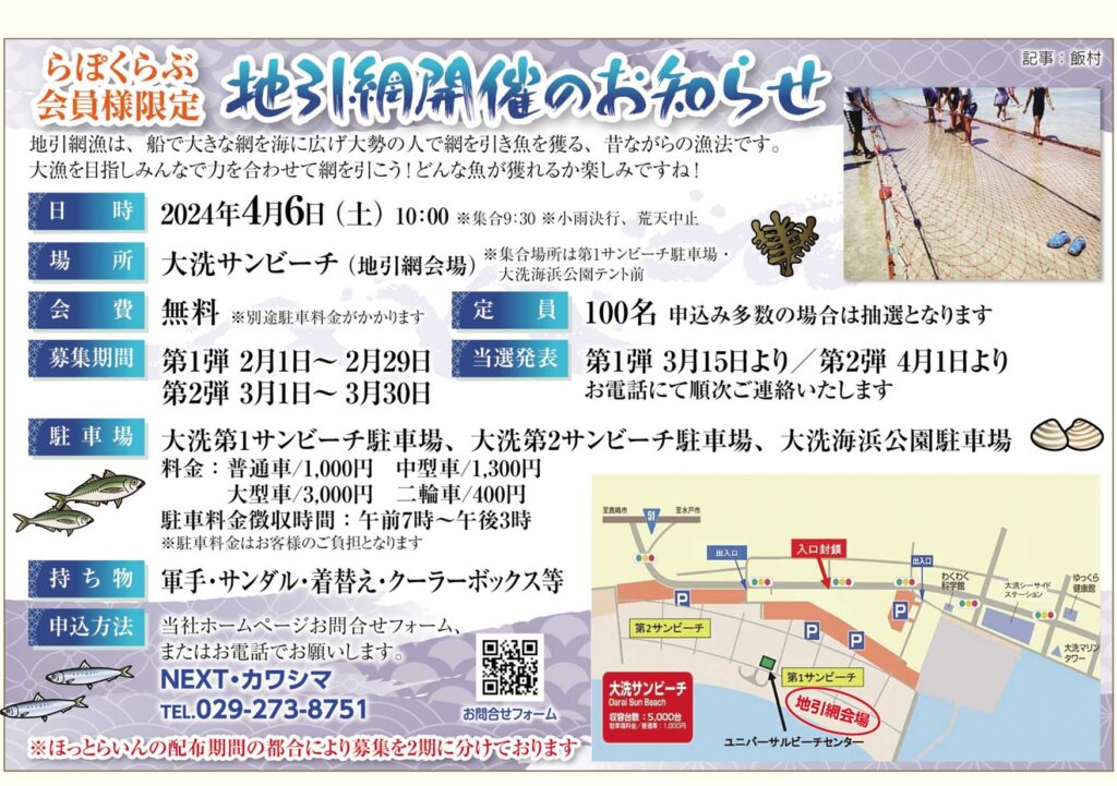 【開催は終了しました】2024.04.06本日、予定通り地引網開催します!